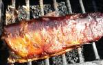 Затем можно начинать загрузку продукта на решетку. Коптить рыбу лучше на открытом воздухе, это позволит исключить попадание влаги в резервуар. Также любой агрегат должен быть оснащен подставкой под стекающий жир. Установить решетку с замаринованными тушками в коптильню, накрыть крышкой и оставить на огне. После этого продержать морепродукт на протяжении десяти минут на сильном огне, потом сбавить огонь и коптить еще где-то полчаса. Если все сделано правильно, то приготовленное блюдо должно быть похоже на рыбку, изображенную на следующем фото.