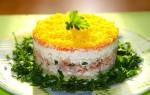 Хотите сделать мимозу с необычным интересным вкусом? Тогда замените картофель отварным рассыпчатым рисом. А, чтобы оттенить нейтральный вкус рисовой каши, добавьте при варке ароматные специи для рыбы или овощей.